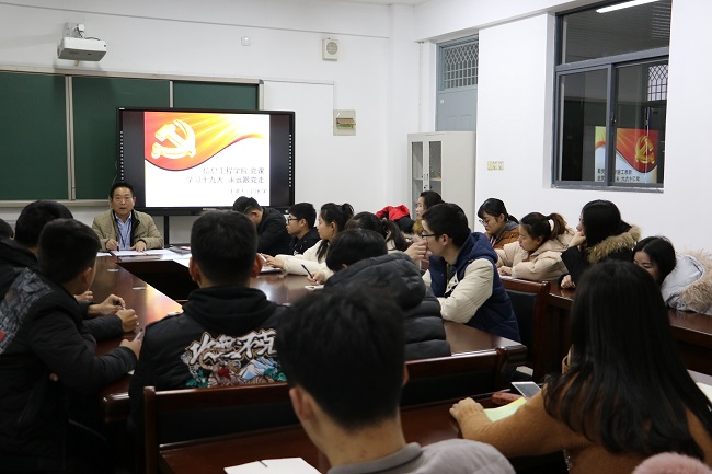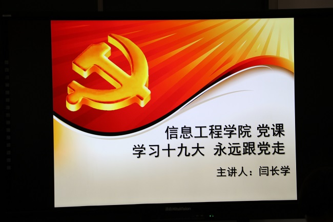2017年12月13日开元网站登录入口党支部书记闫长学在401会议室给开元网站登录入口部分党员和入党积极分子上了题为“学习十九大,永远跟党走”的专题党课,闫长学同志从党的发展历史,十九大的主要精神学习和认真学习永远跟党走三个方面来进行讲课,最后还提出了要求,希望参会的同志一是要不忘初心,思想上和行动上要始终和党中央保持一致,争取早日加入组织,二是要认真学习理论知识和实训技能,为新时代美好的未来打下基础,三是要守规守纪,做一个文明人、模范者,为学校争光,为徐州争光,为淮海经济区建设做出贡献。最后闫书记以名人名言“勿以恶小而为之,勿以善小而不为”结束了本次党课。