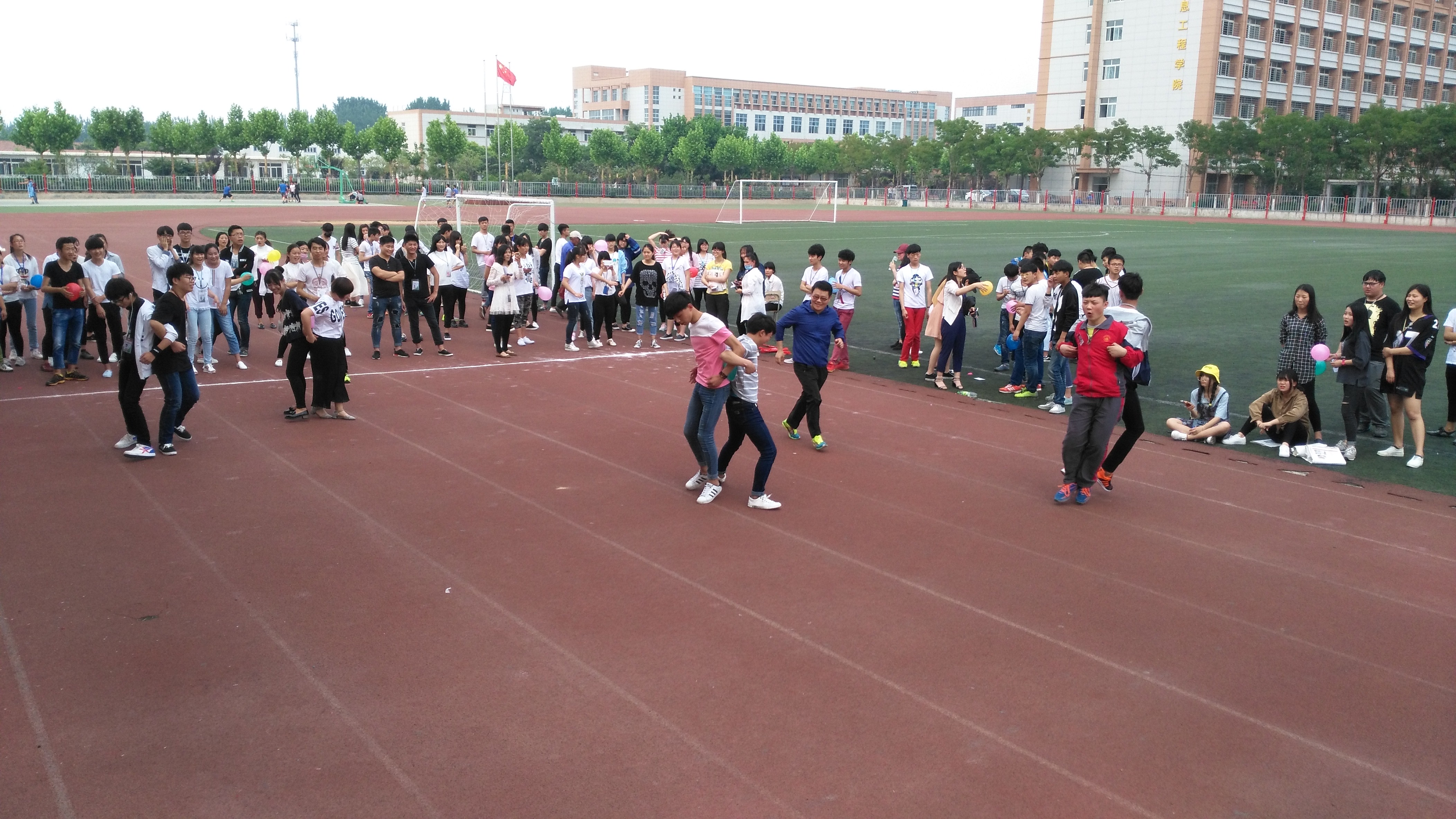 趣味运动会设立了四个项目“信任之旅”、“背靠背,心连心”、“搭桥过河”、“生命履带”。各班级积极参与,同学们群情激昂,锻炼了身体的同时,更增强了班级凝聚力,激发了学生荣誉心。