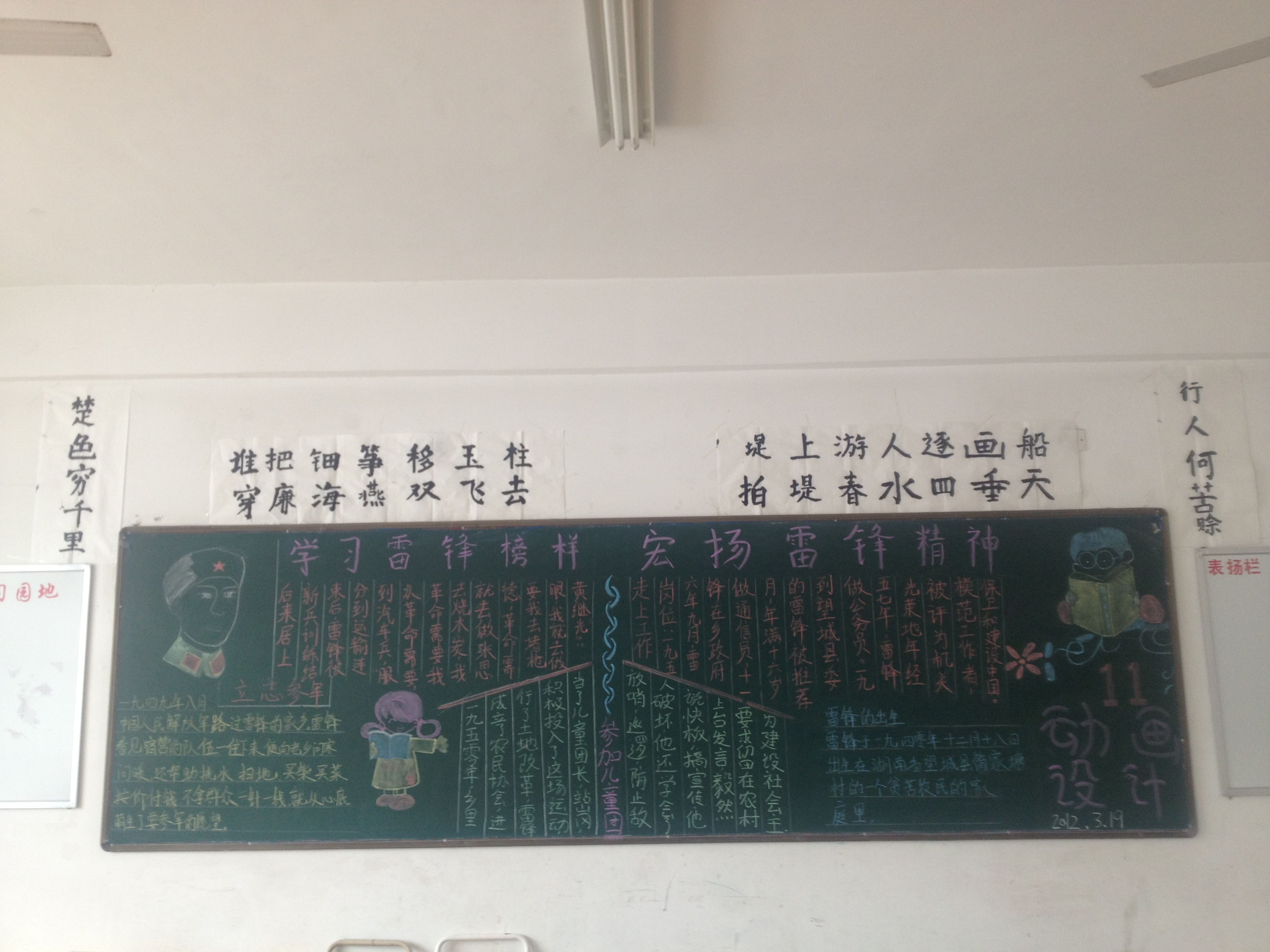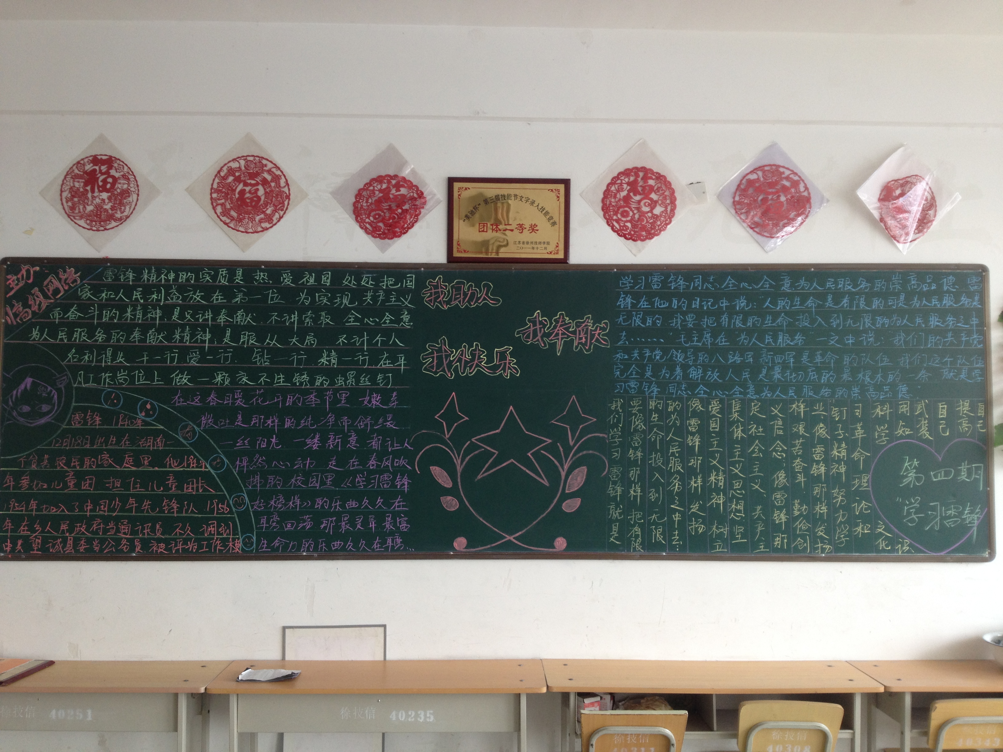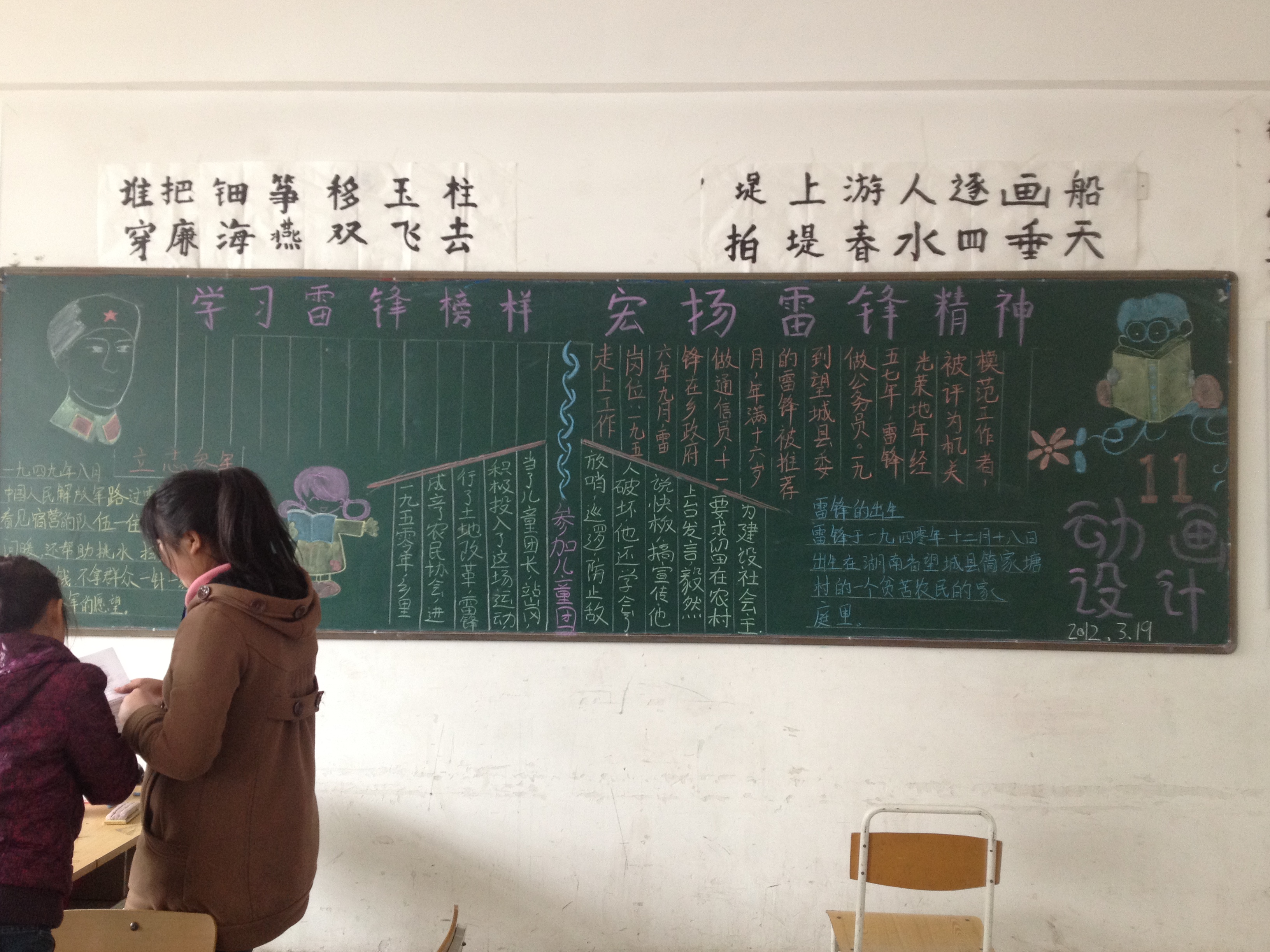 通过班级黑板报比赛活动,加深了同学们对雷锋同志光辉一生的认识,更加深刻地体会到雷锋精神,从而更好的向雷锋学习,关注身边的人和事。