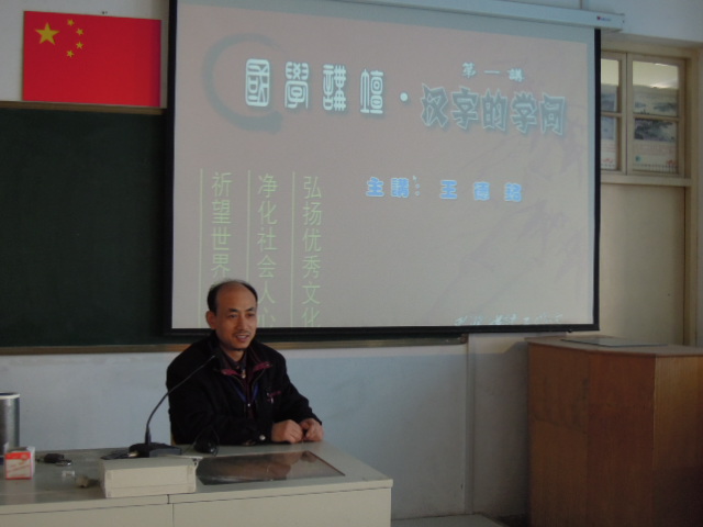 2011年12月8日下午3:30,信息工程系在4号教学楼307多媒体教室,邀请王德铭老师为学生开展了一次题为“国学●汉字里的文化”国学讲座。