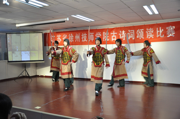 2011年12月15日,我院古诗词诵读比赛在综合楼七楼会议室隆重举行。信息工程系代表队的诵读作品《满江红》,以其构思缜密的编排、精美切题的服装、激昂奋进的朗诵、灵动默契的配合赢得了比赛的第二名。