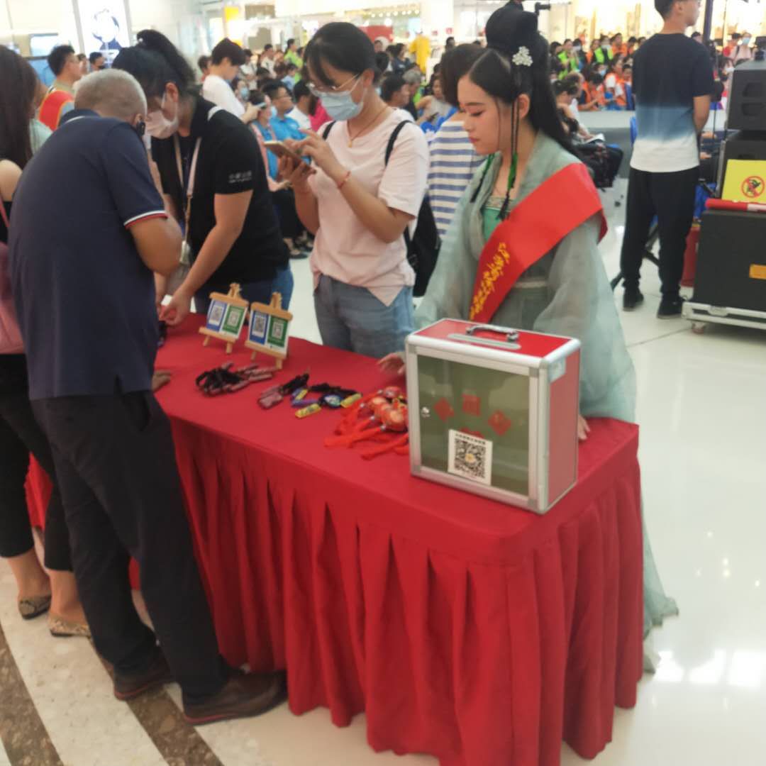 前期通过网络平台宣传、众筹,后期在现场将残疾人制作的工艺品进行义卖,所得善款捐给我市100个困境孤儿。此举不仅可以发挥学生的专业优势,利用计算机进行网络平台众筹宣传,更让广大学生到现场去感受慈善的力量,弘扬向好向善的正能量,让博爱、互助、奉献的精神深入人心。在活动现场,有学生身着汉服,向往来客人介绍义卖产品,进行爱心资助;有学生将活动实况进行网上直播,积极为网上义卖宣传造势,实现“线上线下”联动融合。